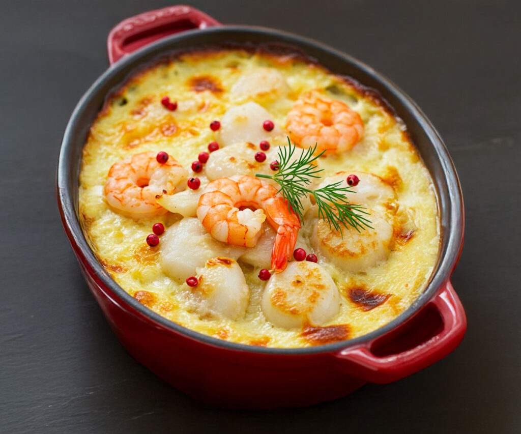Joulun saapuminen tai tärkeä illallinen vaatii epätavallisen alkupalan ilman tuntikausia keittiössä viettämistä. Äyriäisgratiini on juuri sitä, mitä tarvitset: elegantti, herkullinen ja uskomattoman helppo ruokalaji valmistaa. Se yhdistää äyriäisten mureuden, suussa sulavan kalan koostumuksen ja hienovaraisesti maustetun, kermaisen kastikkeen täyteläisyyden, kaikki täydellisesti paistettuna.