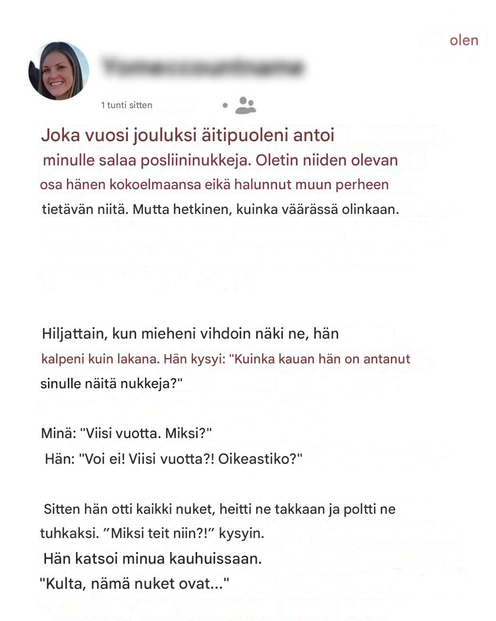 Äitipuoleni antoi minulle salaa posliininukkeja joka joulu – Olin järkyttynyt, kun sain tietää niiden todellisen tarkoituksen