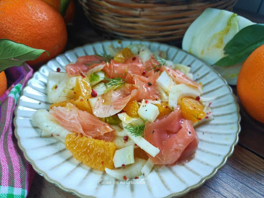 Appelsiini-, fenkoli- ja lohisalaatin resepti on erittäin yksinkertainen ja nopea valmistaa; ruoanlaittoa ei tarvita, vain kaikkien ainesten kokoaminen. Täydellisen salaatin salaisuus piilee ainesten laadussa, joiden on oltava tuoreita ja erinomaisia.
