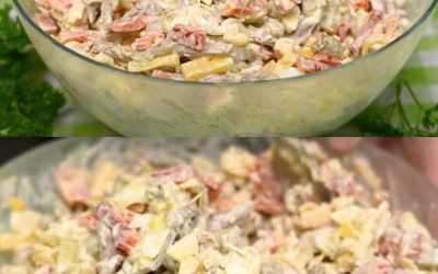 Perunaton "Merenneitosalaatti" — herkullinen ja terveellinen salaatti 😋 ✅Ainekset: Liha — 300 g; Paprika — 2; Säilykeherneet — 180 g;…