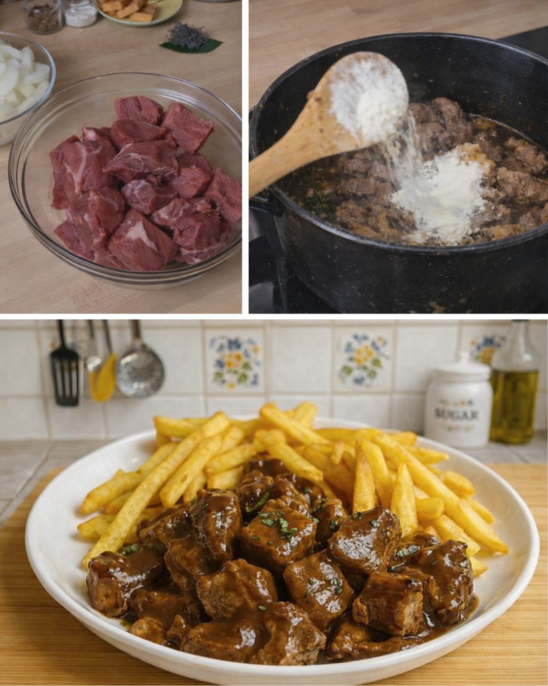 Rapeaksi paistettujen kotitekoisten ranskalaisten perunoiden kera tarjoiltuna se on äärimmäisen lohduttava ja seurallinen ruokalaji, joka sopii täydellisesti perheen tai ystävien kanssa nautittaviin aterioihin.