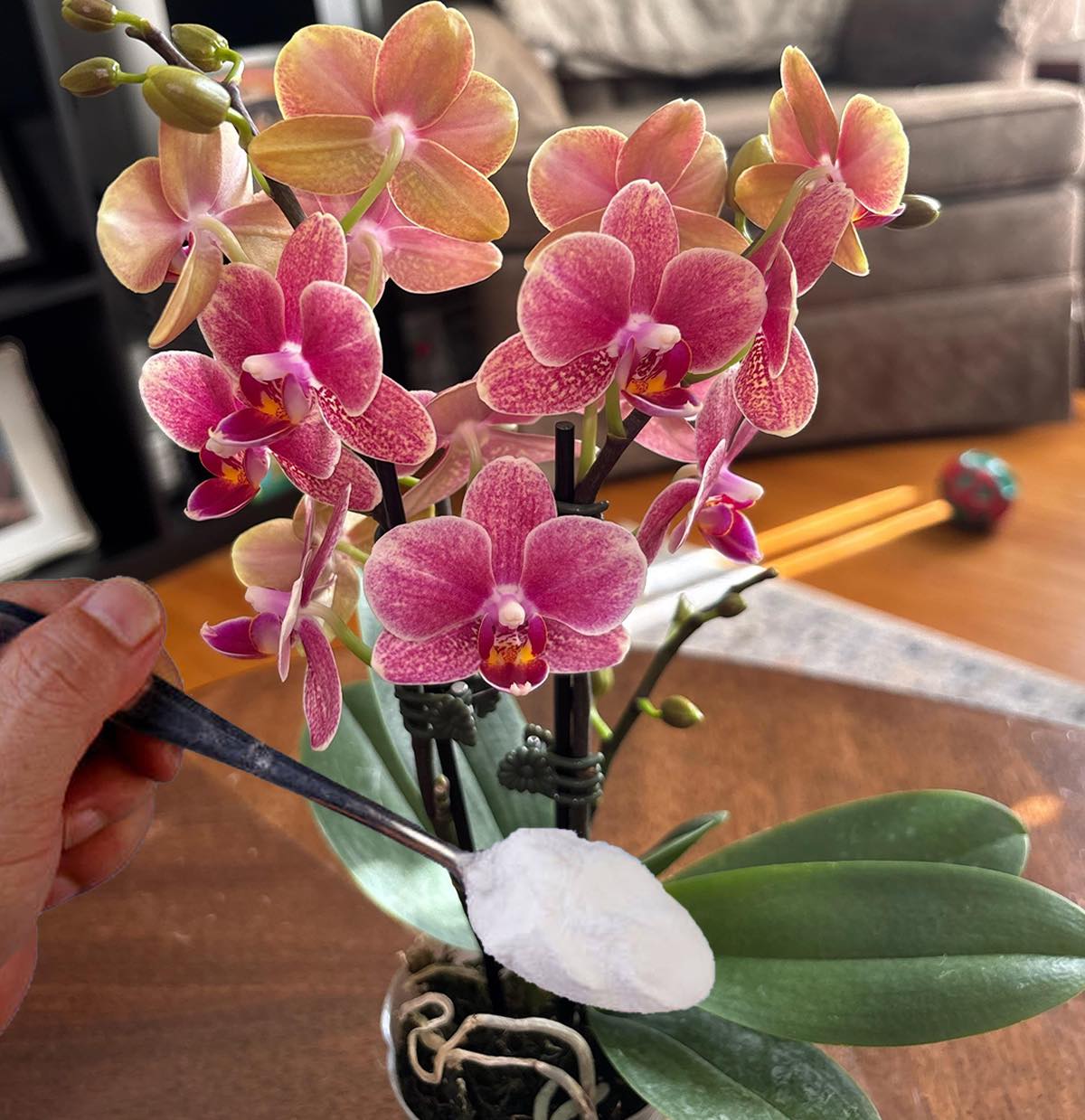 Jos orkidea kasvaa samassa kasvualustassa liian kauan, voi muodostua kyllästymistä ja kuidun ja ilman tasapaino voi häiriintyä. On suositeltavaa istuttaa orkideat uudelleen kahden vuoden välein hyvän salaojituksen varmistamiseksi ja juurimädän estämiseksi. Älä kuitenkaan istuta niitä uudelleen kukinta-aikana.