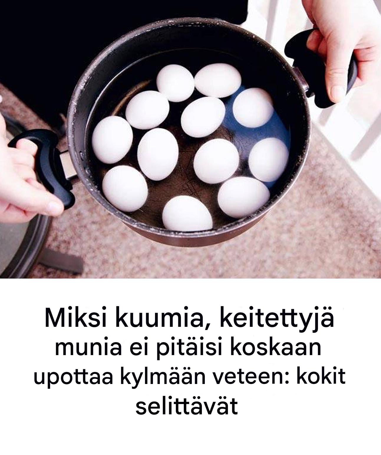Tämä ele saattaa vaikuttaa harmittomalta, mutta kuuman munan ja jääveden välinen jyrkkä kontrasti saa proteiinit reagoimaan hyvin nopeasti. Seurauksena valkuainen kutistuu liian nopeasti, mikä antaa sille kovan ja epämiellyttävämmän koostumuksen. Samaan aikaan keltuainen voi saada hieman harmahtavan sävyn ja menettää pehmeytensä, ikään kuin se olisi ylikypsennetty.