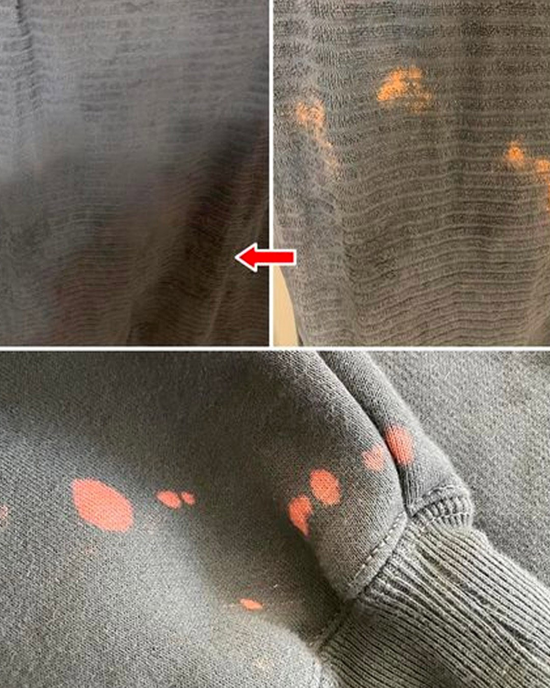 Tulos: tahrat vähenevät näkyvästi ja väri näyttää tasaisemmalta, aivan kuin kangas olisi saanut toisen elämän.