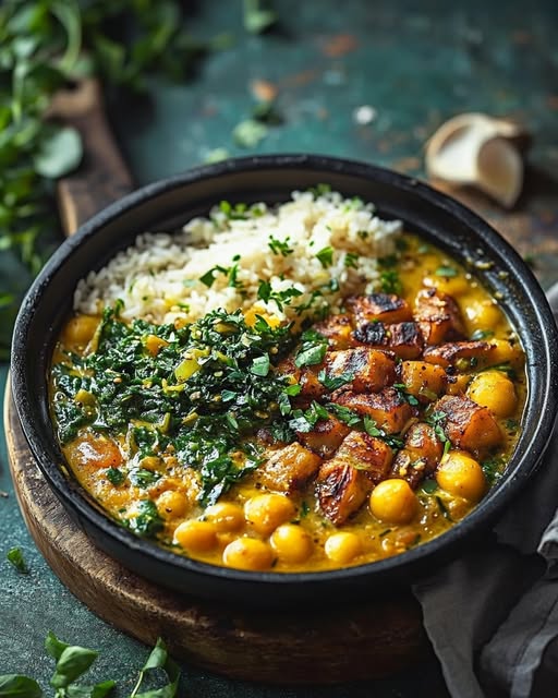 Ainekset 🍽️** – 400 g keitettyjä kikherneitä (säilyke, valutettu ja huuhdeltu) 🥫 – 200 g tuoretta pinaattia 🌿 – 1 silputtu sipuli 🧅 – 2 hienonnettua valkosipulinkynttä 🧄 – 1 pala tuoretta inkivääriä (2 cm), raastettuna 🌟 – 2 kuutioitua tomaattia 🍅 – 200 ml kookosmaitoa 🥥 – 1 rkl currytahnaa tai 2 tl curryjauhetta … Read more
