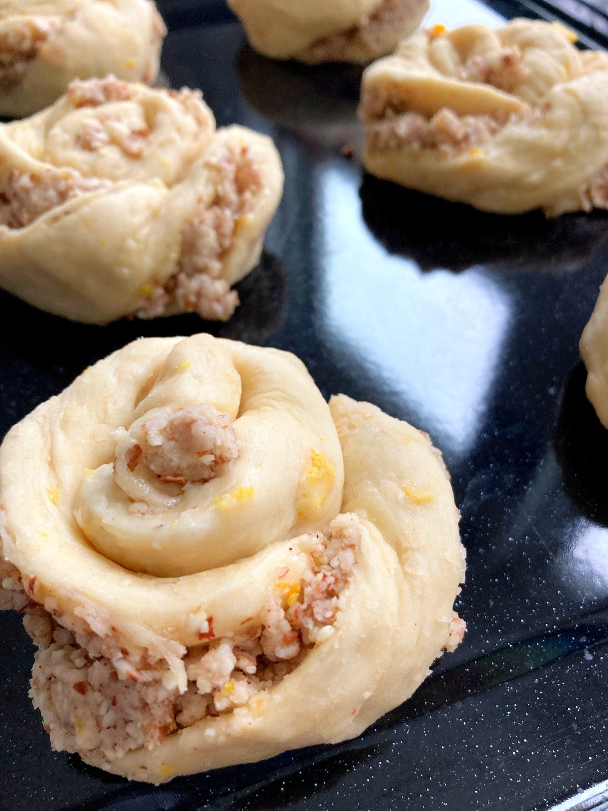 Nämä herkulliset appelsiininmakuiset makeat pullat on täytetty maustetulla mantelimassalla ja päällystetty yksinkertaisella sitruskuorrutteella. Taikinan pyörittely ja pyörittely tekevät niiden valmistamisesta yhtä hauskaa kuin syömistäkin! Riitto: 20-22 pullaa Valmistusaika: 30 minuuttia + 1,5 tuntia kohotusta Paistoaika: 12-15 minuuttia Taikina: 4-4 ½ dl jauhoja, jaettuna ½ dl kidesokeria, jaettuna 2 tl suolaa 2 tl raastettua appelsiininkuorta (1-2 … Read more