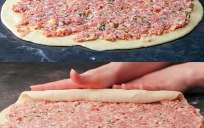 Kääri hihat jauhelihan kanssa Ainekset: Rakkaat ystävät, jos piditte tästä reseptistä, jättäkää kommentti! 1 paketti pizzataikinaa tai itse tehtyä hiivataikinaa…