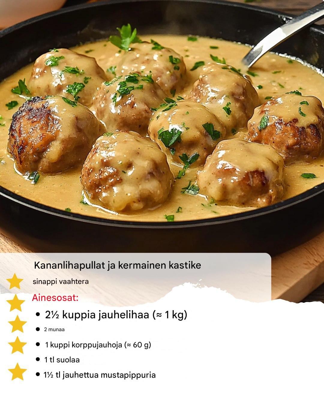 Kananlihapullat ja kermainen vaahterasinapkastike: Täydellinen lohturuokaillallinen