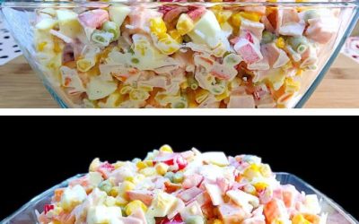 🛒 Ainekset: 🥕 2 porkkanaa (kypsennettynä ja kuutioituna) 🌽 1 tölkki maissia 🥚 4 kananmunaa (kovaksi keitettynä, kuutioituna) 🧀 150…