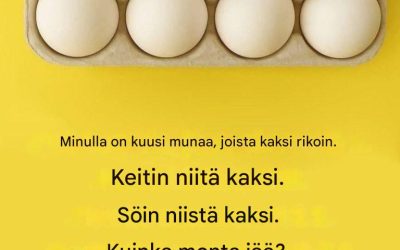 Minulla on 6 munaa. Rikoin 2. Paistoin 2. Söin 2. Kuinka monta munaa minulla on jäljellä? Ensi silmäyksellä ajattelet: se…