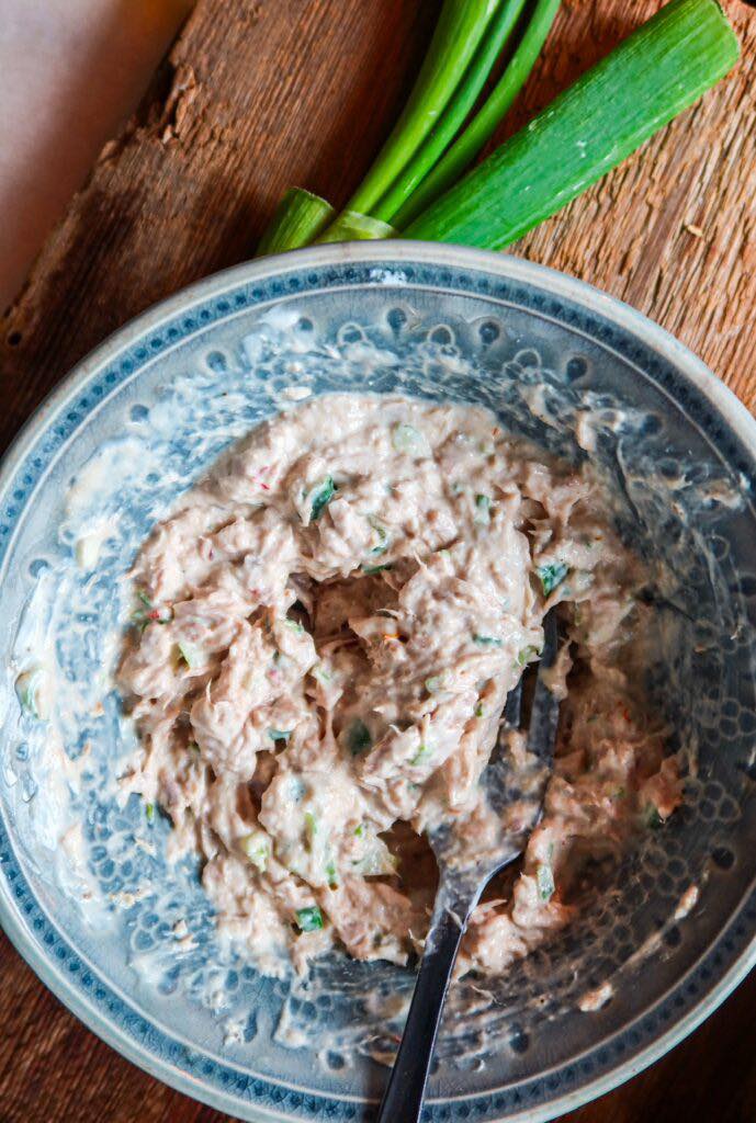 Tonnikalasalaattia voi syödä monella tapaa. Uunissa paistettuna perunana, patongissa, tuplaleivässä, sellaisenaan keitettyjen perunoiden kanssa, salaattipedillä keitettyjen munien kanssa tai wrapissa. Tonnikalasalaatin voi kääriä rieskaan ja tehdä siitä voileipiä. Leikkaa ja poista avokadosta siemenkoda ja syö tonnikalasalaatin sen päällä. Crostinien päällä välipalana. Se sopii jopa paahdetun hampurilaissämpylän kanssa hyvien lisukkeiden kera. Syö tonnikalasalaattia pastasalaatissa. Laita se pieniin salaatinlehtiin ja saat hyvän välipalan. Kyllä, mutta ymmärrät varmaan idean, tonnikalasalaatilla voi tehdä paljon asioita. Lisäksi se on vain niin hyvää! Oksennan, haha… Tässä on reseptini! Tonnikalasalaatti