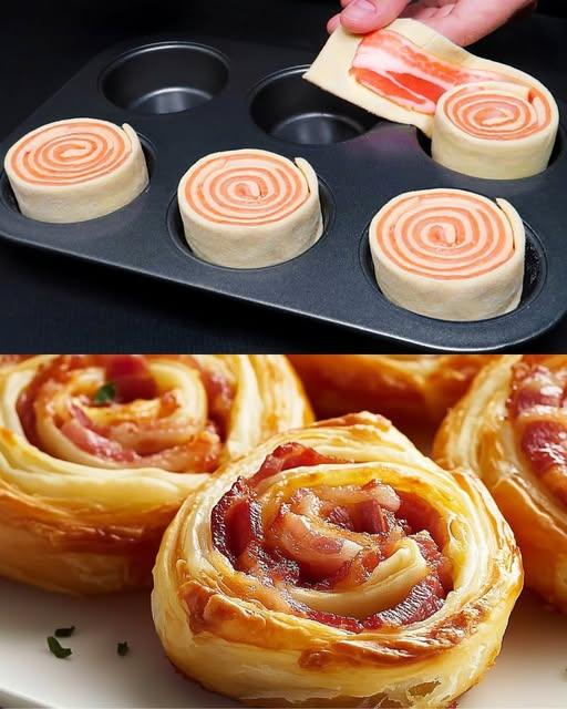 Nämä pekoni-juusto-voitaikinapalat ovat täydellinen alkupala tai välipala, jossa yhdistyvät rapea voitaikina, maukas pekoni ja sulanut juusto jokaisessa hiutaleisessa palassa. Ne ovat nopeita valmistaa ja täynnä makua, joten ne sopivat täydellisesti mihin tahansa tilaisuuteen!