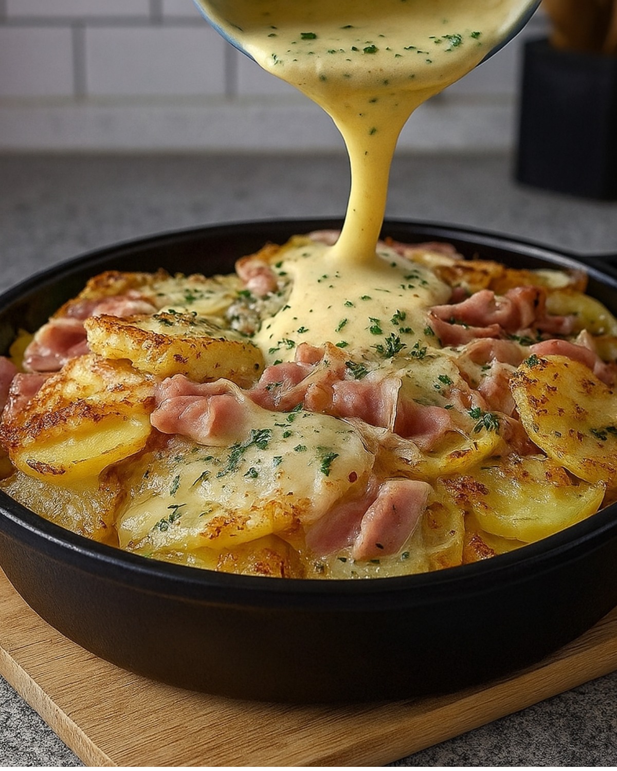 100–150 g raastettua juustoa (Gruyère, Comté, Emmentaler tai Cheddar)