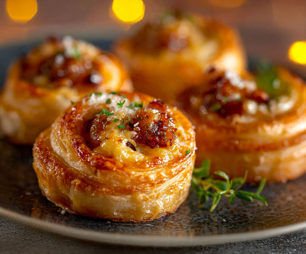 Joskus hyvin vähä riittää luomaan vau-efektin cocktail-tunnilla. Kultainen voitaikina, ripaus sulatettua juustoa, ripaus makeaa confit-sipulia… ja voilĂ , rapeita paloja, jotka ovat valmiita viettelemään vieraasi ensimmäisestä puraisusta lähtien. Elegantit, yksinkertaiset ja maukkaat, nämä pienet ihmeet ovat täydellinen tasapaino hemmottelun ja hienostuneisuuden välillä.
