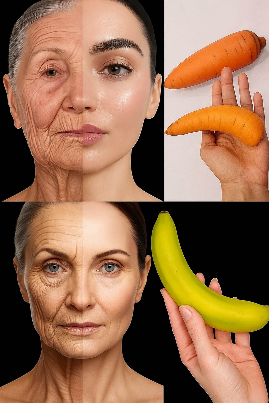 Tiesitkö, että keittiösi on täynnä ihmeainesosia? Makeat ja ravitsevat banaanit ovat täynnä vitamiineja (A, C, E) ja kaliumia, jotka ovat ihanteellisia ihon elvyttämiseen. Yhdessä porkkanoiden, todellisen beetakaroteenivaraston, kanssa ne muodostavat tehokkaan nuorentavan cocktailin, joka suojaa ja uudistaa ihoa. Luonto tekee joskus asiat oikein, eikö niin?