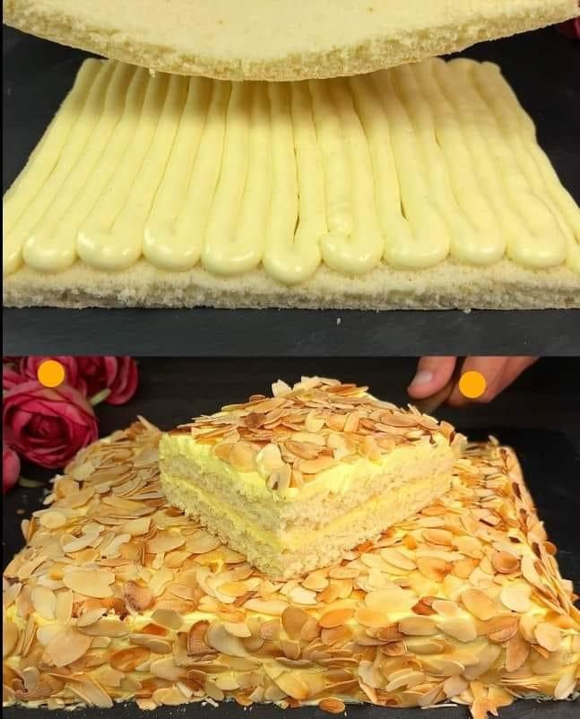 Sitruunasokerikakku sitruunakermalla ja mantelitäytteellä