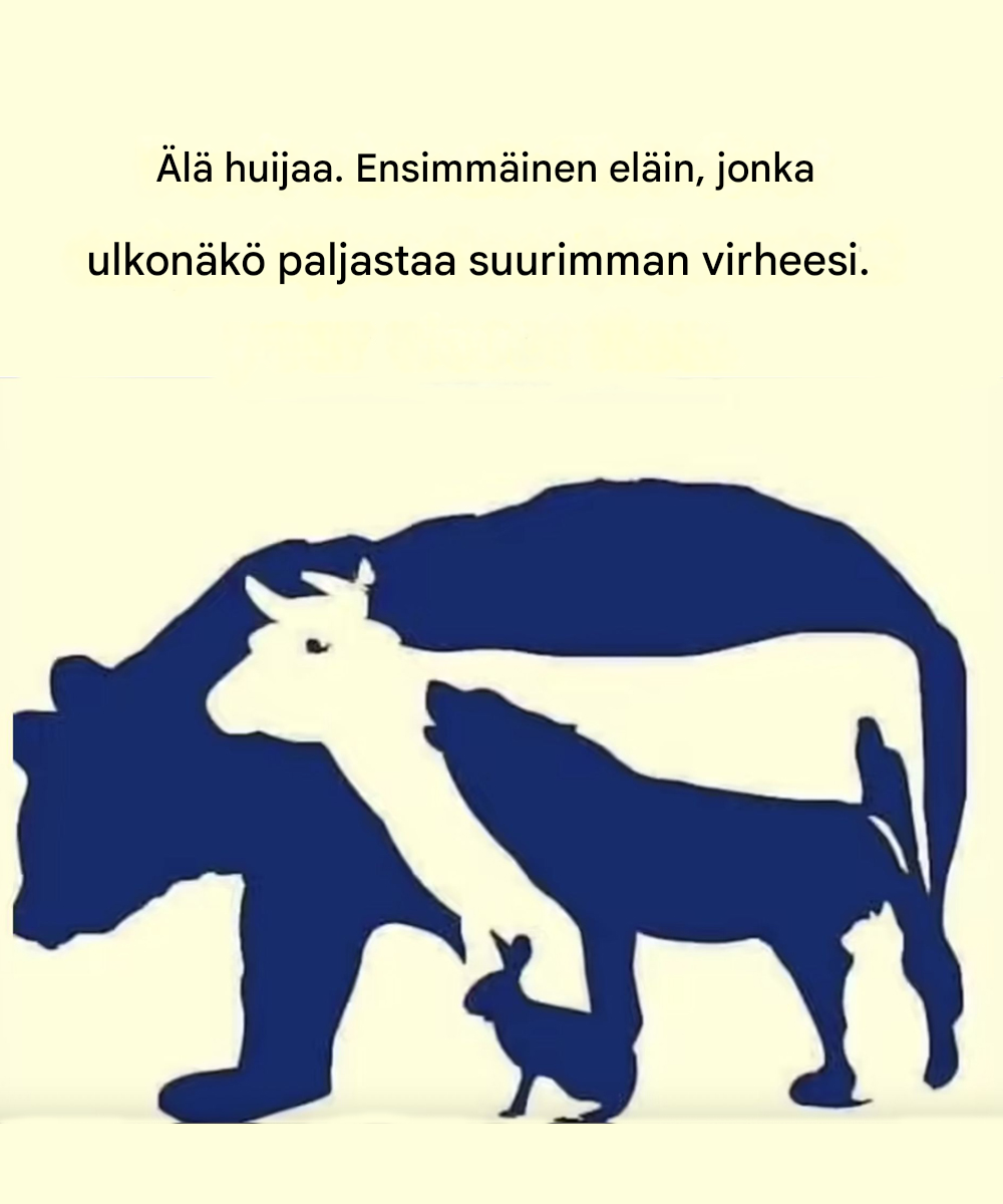 Optiset illuusiot paljastavat usein persoonallisuutemme pieniä puolia, joita emme aina tunnista – joskus hulvattomalla tavalla ja toisinaan yllättävän tarkasti. Yllä oleva kuva on yksi tällainen illuusio, jossa useita eläimiä on piilotettu ovelasti yhteen siluettiin. Idea on yksinkertainen: ensimmäinen eläin, jonka huomaat, viittaa todennäköisesti “suurimpaan virheeseesi”.