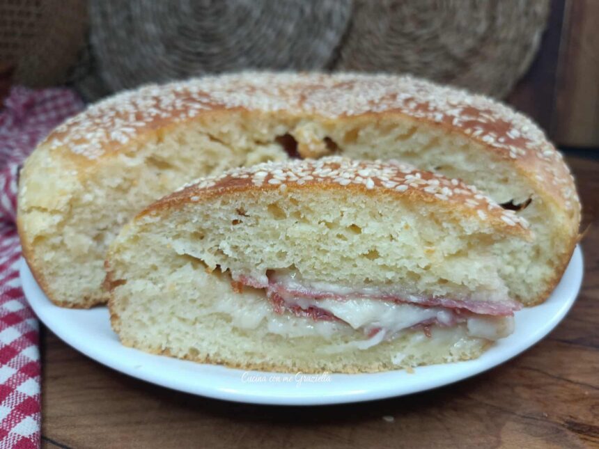 Täytetty pizza on yksi herkullisimmista maalaiskakuista italialaisessa perinteessä. Se on hapanjuuritaikina, pehmeä ja paksu, täytetty valitsemallasi suolatulla lihalla ja juustolla. Sen ainutlaatuisuus piilee koostumuksessaan: taikinaan lisättyjen vatkattujen kananmunanvalkuaisten ansiosta lopputulos on uskomattoman pehmeä ja kevyt, lähes pilvimäinen, säilyttäen samalla täytetyn maalaiskakun tyypillisen täyteläisyyden.