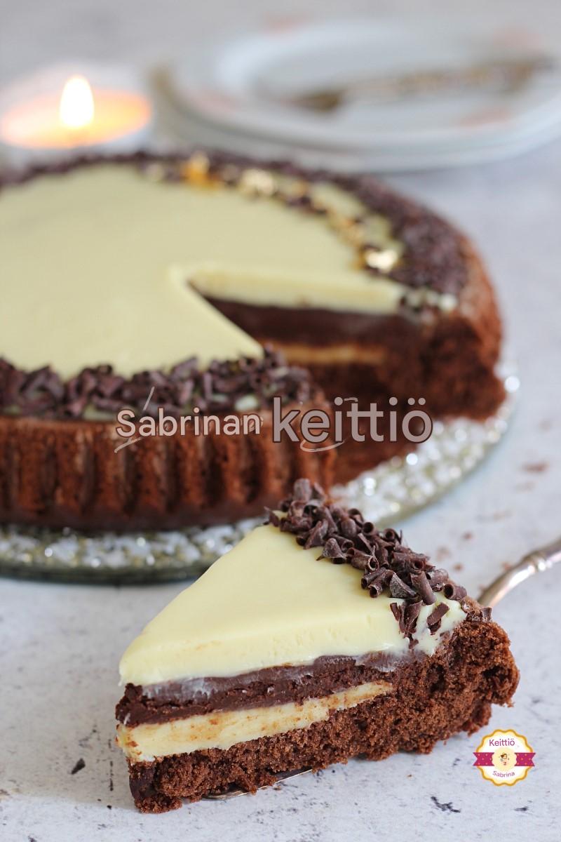 Tuplasuklaapiiras on herkullinen jälkiruoka, joka perustuu piirakkafurbaan ja on täytetty kolmella suklaaganache-kerroksella.