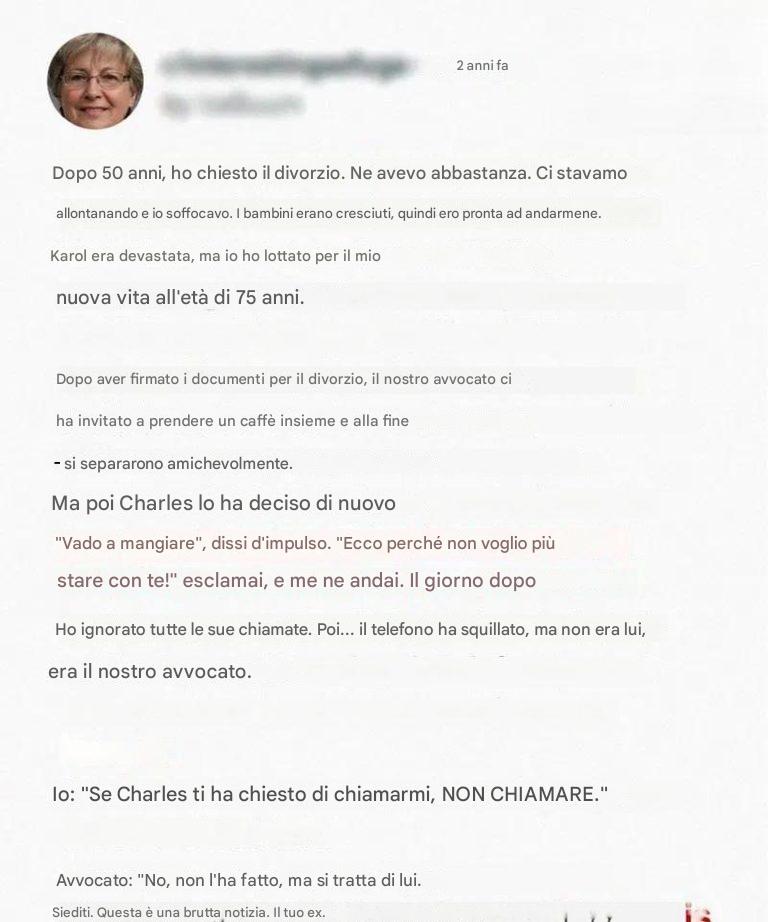 Un divorzio dopo 50 vuotta di cui si è presto pentita